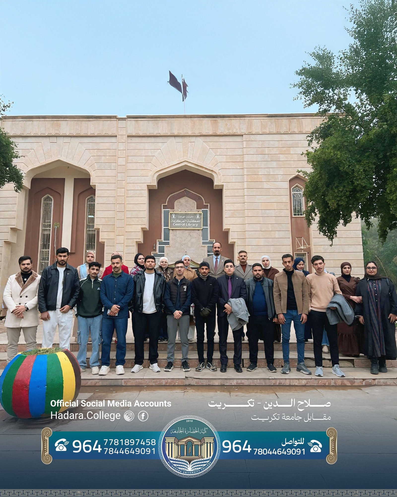 وتُعرب الكلية عن تقديرها العالي للتعاون المثمر الذي أبدته إدارة المكتبة المركزية، وما وفّرته من أجواء علمية مناسبة وحسن تنظيم، كما تتقدّم بالشكر الجزيل إلى السادة التدريسيين المشرفين على الزيارة لجهودهم المتميّزة في دعم الجانب العملي وتعزيز خبرات الطلبة الأكاديمية.