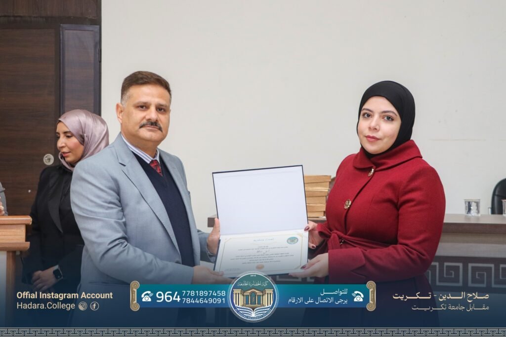وتضمّن الحفل توزيع شهادات التقدير والدروع على الطلبة المتفوقين، والإشادة بجهودهم ومثابرتهم خلال العام الدراسي، مع التأكيد على حرص الكلية على دعم الطلبة المتميزين وتحفيزهم على مواصلة النجاح والارتقاء بالمستوى العلمي.