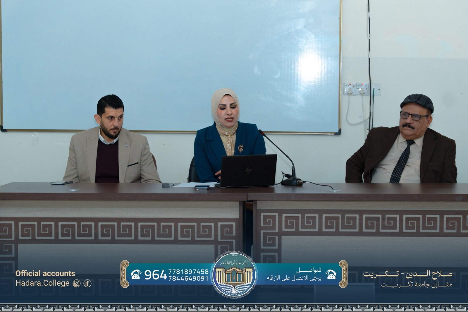 وقد ألقت الندوة الدكتورة مآرب أحمد عواد العزاوي وسط حضور علمي متميز وتفاعل مثمر من التدريسيين والطلبة.