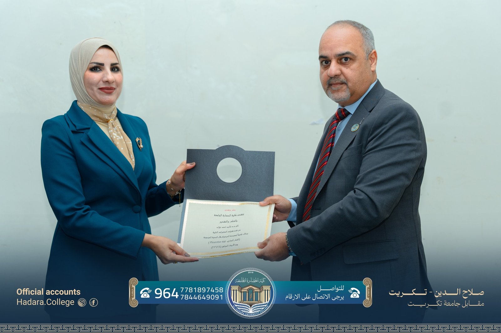 برعاية السيد عميد كلية الحضارة المحترم الأستاذ الدكتور عبد المجيد محمد أحمد وبإشراف معاون العميد للشؤون العلمية الأستاذ الدكتور رائد فاضل جويد ومعاون العميد للشؤون الادارية الاستاذ الدكتور عمار عوده الخالدي