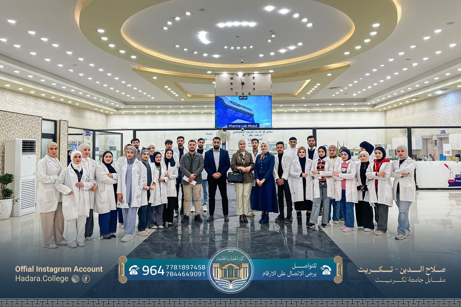 تتقدّم كلية الحضارة الجامعة بخالص الشكر والتقدير إلى طلبتها الأعزاء لمشاركتهم في الزيارة العلمية إلى مختبر فارما