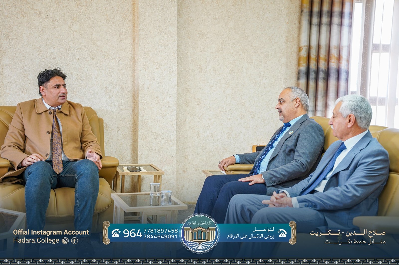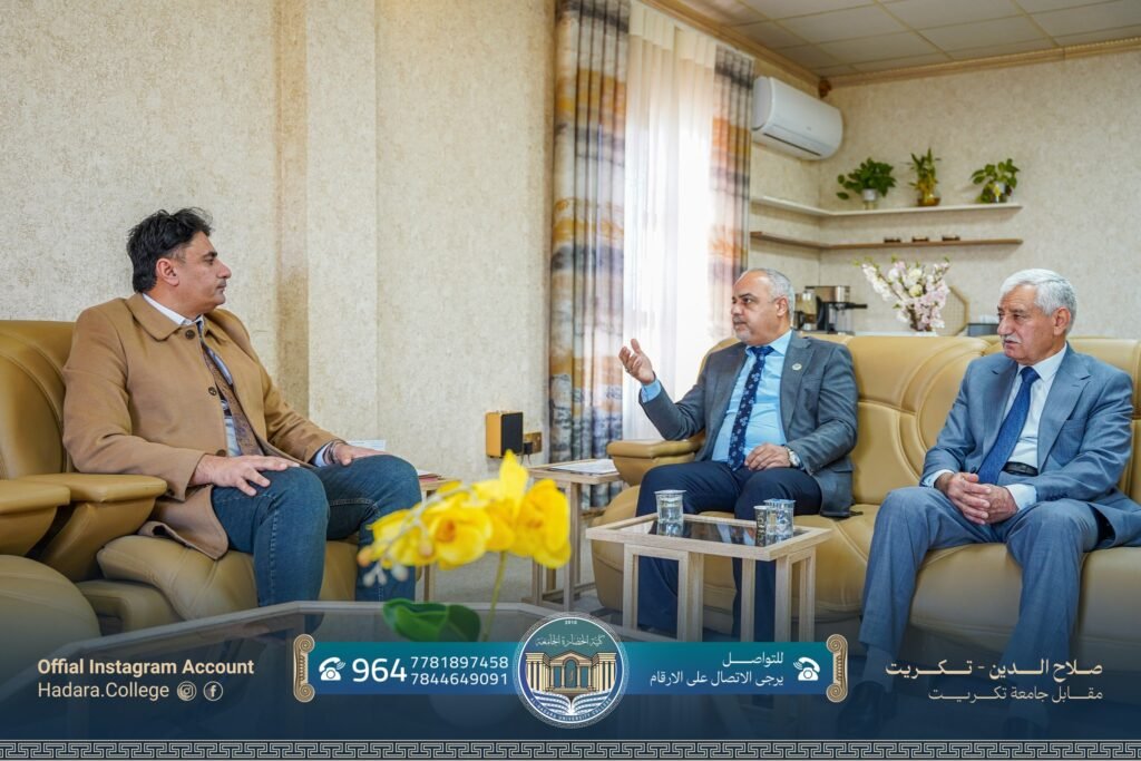 في إطار تعزيز التعاون العلمي والأكاديمي، استقبل عميد كلية طب الأسنان في جامعة تكريت الأستاذ المساعد الدكتور محمد أرحيل الحديثي، معاون العميد للشؤون الإدارية الأستاذ الدكتور عمار عوده الخالدي، ورئيس قسم الصيدلة الأستاذ الدكتور مظهر يونس محمد، وذلك لبحث آفاق التعاون العلمي المشترك وتبادل الخبرات بما يخدم المسيرة التعليمية والبحثية بين الأقسام العلمية.